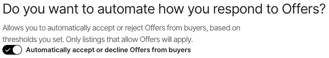- Toggle the button 'on' next to Automatically accept or decline Offers from buyers.