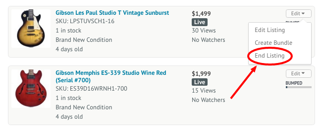 Il n’y a aucun frais associé à la clôture de votre annonce sur Reverb. Nous vous facturons des frais de vente que si votre article est effectivement vendu.