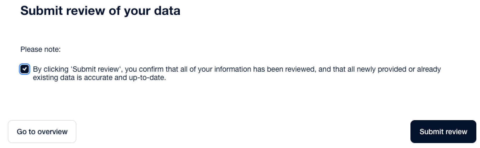 - Selezionare la casella fornita per confermare l'accuratezza dei dati.